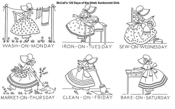 Sunbonnet Girls For Days Of The Week Dish Towels 120 A Pdf Etsy De