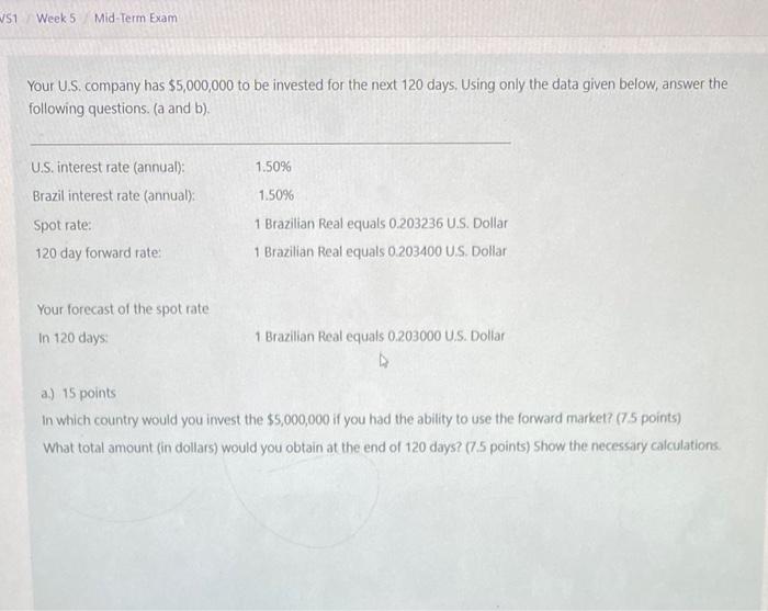 Solved 51 Week 5 Mid Term Exam Your U S Company Has Chegg Com